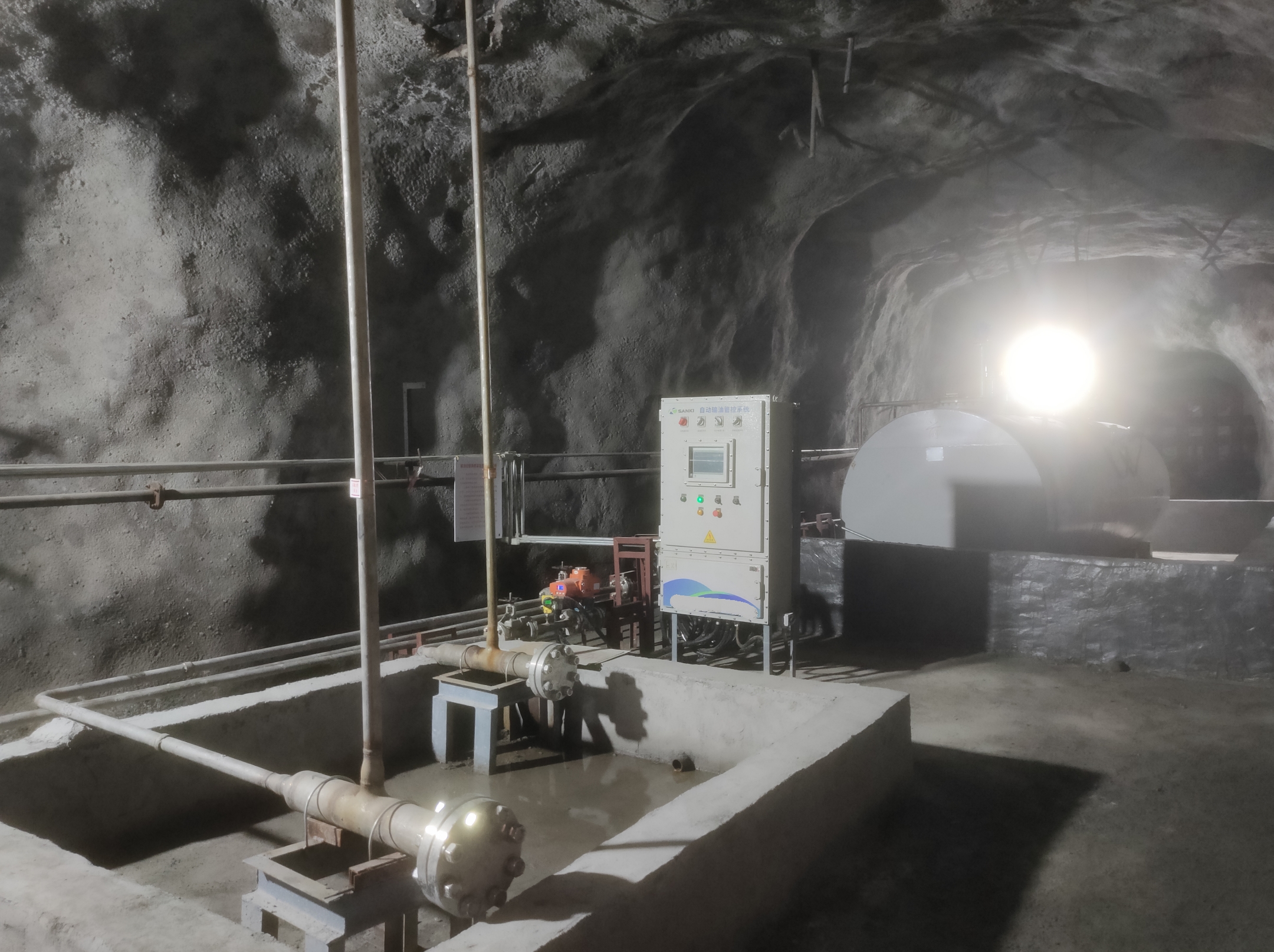 凡口鉛鋅礦井下680米智能供油系統(tǒng) 目前正有序施工中, 預(yù)計(jì)9月底完工并投入使用。該項(xiàng)目為全國(guó)首創(chuàng), 由韶關(guān)企業(yè)進(jìn)行技術(shù)攻堅(jiān) 并申請(qǐng)多項(xiàng)國(guó)家專利, 擬申報(bào)吉尼斯世界紀(jì)錄 “全球最深的智能供油系統(tǒng)”。 凡口鉛鋅礦井下智能供油系統(tǒng) 需在地面設(shè)置橇裝加油裝置, 并分別在地下 330米、480米和680米處 建設(shè)智能化供油系統(tǒng), 通過鉆孔鋪設(shè)輸油管線, 將油品從地面輸送到井下。 地下330米智能加油點(diǎn), 目前已進(jìn)入收尾階段, 現(xiàn)場(chǎng)有兩根 從地面裝置接下來的輸油管, 用于工程車加油, 另一邊也有兩根輸油管輸送到 地下480米和680米的智能加油點(diǎn)。 別看油管很細(xì),鉆孔不大, 但施工難度并不小, 全長(zhǎng)3千多米的輸油管, 垂直打孔偏差不能超過1米。 作為亞洲最大的 單體鉛鋅銀礦生產(chǎn)基地, 凡口鉛鋅礦 有井下工程車輛和設(shè)備100多臺(tái), 井下用油量大。 井下智能化供油系統(tǒng)啟用后, 不僅解決井下用油安全、環(huán)保風(fēng)險(xiǎn), 同時(shí)降低生產(chǎn)用油成本, 推進(jìn)凡口鉛鋅礦建設(shè)智能化礦山, 實(shí)現(xiàn)“無人開采”。 如果鉆孔偏差太大,就找不到鉆下來的孔,影響輸油管道的布設(shè),增大成本。3千多米有5千多個(gè)焊接點(diǎn),所有的焊接口都要達(dá)到高壓管道的焊接要求,這個(gè)項(xiàng)目是全國(guó)首創(chuàng),在全國(guó)所有礦山企業(yè)中,我們是首次使用通過輸油管道往井下輸油,并且實(shí)現(xiàn)智能控制的方案。 這個(gè)月底把地下330米加油點(diǎn)完工,開始加油,9月底把底下480米和680米開通使用。希望通過這個(gè)項(xiàng)目打造創(chuàng)新科技的韶關(guān)樣板,把先進(jìn)的經(jīng)驗(yàn)和技術(shù)推廣到全省、全國(guó)乃至全球。